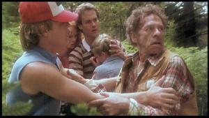 Doch der krasse Dualismus von Natur und Zivilisation beruht natürlich auf einer Verdinglichung beider Seiten, ein Prozess, der vor allem in der Romantik eingeleitet wurde. So finden sich immer wiedert bildliche Hinweise darauf, dass das Abstraktum „Natur“ eben nur ein solches ist. So zum Beispiel, wenn der als Naturbursche alter Prägung charakterisierte Roy (George Kennedy) sich rührend um eine Topfpflanze kümmert und dabei sagt, dass man „nature’s delicate balance“ niemals stören solle. Nach den Eingangsbildern ist diese Aussage unmissverständlich als Schlüsselsatz erkennbar, widerspricht jedoch ebenso deutlich dem gebotenen Bild. Die „Natur“ ist ja längst gebändigt, verwertet und urbar gemacht. Kaum ist der Satz ausgesprochen, beginnt Roys Pferd zu scheuen, weil ein Auto mit lautstarker Musik heranrast: Es sind die Protagonisten, fünf Städter, die zu einem Stück Land in den Bergen wollen, dass laut einer Urkunde Warren (Gregg Henry) gehört. „The mountain can’t read“ sagt Roy, warnt die jungen Leute vor einer undefinierten Gefahr, lässt sie aber schließlich ziehen.