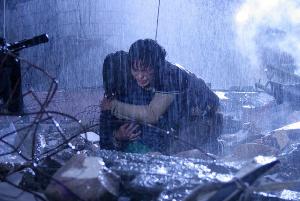 Die Verbindung der Roboterthematik (und somit der Science Fiction) mit grellem Humor und der Form der romantischen Komödie lässt zudem natürlich zuallererst an Park Chan-Wooks zwei Jahre früher entstandenen, großartigen „I’m a Cyborg but that’s OK“ denken. Dennoch würde man „Cyborg She“ keinesfalls gerecht werden, würde man ihn als bloßes Rip-off dieses bei Kritik und Publikum gleichermaßen geschätzten Vorgängers begreifen. So streben die Konzeptionen beider Filme nämlich denkbar weit auseinander: Wo Parks Film trotz der oberflächlich episodischen Strukturierung inhaltlich denkbar konzentriert war, da zerfällt „Cyborg She“ in mindestens vier vollkommen heterogene Teile, deren Tonlagen kaum noch etwas miteinander zu tun haben wollen. Auf einen leichtfüßigen Beginn in der fast 20-minütigen Pre-Credit-Sequenz folgt ein Abschnitt, in dem sich Kwak vor allem auf eine Reihe von teilweise wunderbar komischen Deadpan-Pointen konzentriert. Daran schließt eine süßlich-sentimentale, von verklärter Nostalgie geprägte Zeitreise in die Kindheit Jiros an, und schließlich stürzt sich die Erzählung von „Cyborg She“ dann kopfüber in ihre eigenen Potenziale zur Ausgestaltung apokalyptischer Science Fiction hinein. Was nun recht wirr klingt, ist im Film zwar ganz klar strukturiert, klafft jedoch durch die abrupten Sprünge zwischen den diversen Tonlagen auch offen auseinander und hat in diesem Mut zum harten Kontrast unter den großen Filmemachern des Postmodernismus vielleicht noch mehr mit Eli Roth zu tun als mit Park Chan-Wook.