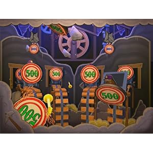 Disney wirbt für das vollpreisige „Toy Story Mania“ damit, dass man die „beliebten Figuren“ aus der Film-Serie, deren dritter Teil in Kürze im Kino startet, im Spiel durch einen eigens um die Filme herum konzipierten Disney-Land- und Disney-World-Parcours schicken kann. Dort hat man dann mit ihnen verschiedene Wurf- und Geschicklichkeitsspiele zu bewältigen. Die lassen sich alle einzeln auswählen – oder aber im „Story Modus“ hintereinander weg spielen. Was daran die „Story“ sein soll, bleibt das Geheimnis der Entwickler.